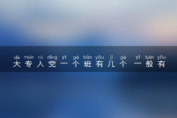 一般是1-4个名额。大专院校一个班的入党名额是不定的。根据学校的总名额分配到各院、从各院分配到各系、再从各系到各班,名额逐层递减,最终到班上才知道名额。所以说大专一个班的入党名额是视情况而定的。