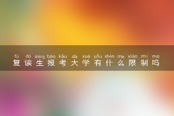 一般来说,绝大多数院校和专业,对复读生和应届生都一视同仁,根本不会存在歧视复读生一说。只有极个别的学校和专业,对复读生有限制。在高考招生中,不招收复读生的院校类型及情况有:军事院校、武警院校、大部分高校保送生、自主招生以及部分院校(专业),这些院校都会明确规定不招收复读生。