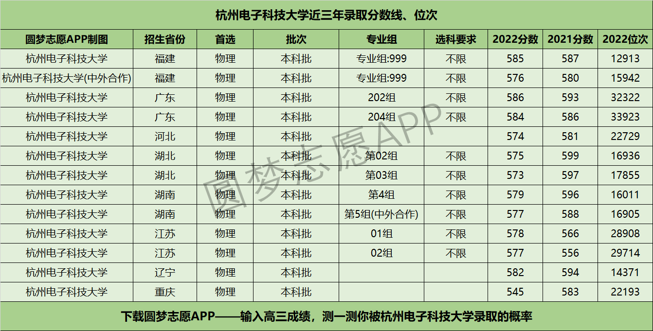 三、杭州电子科技大学近年录取分数线及位次【首选物理版】