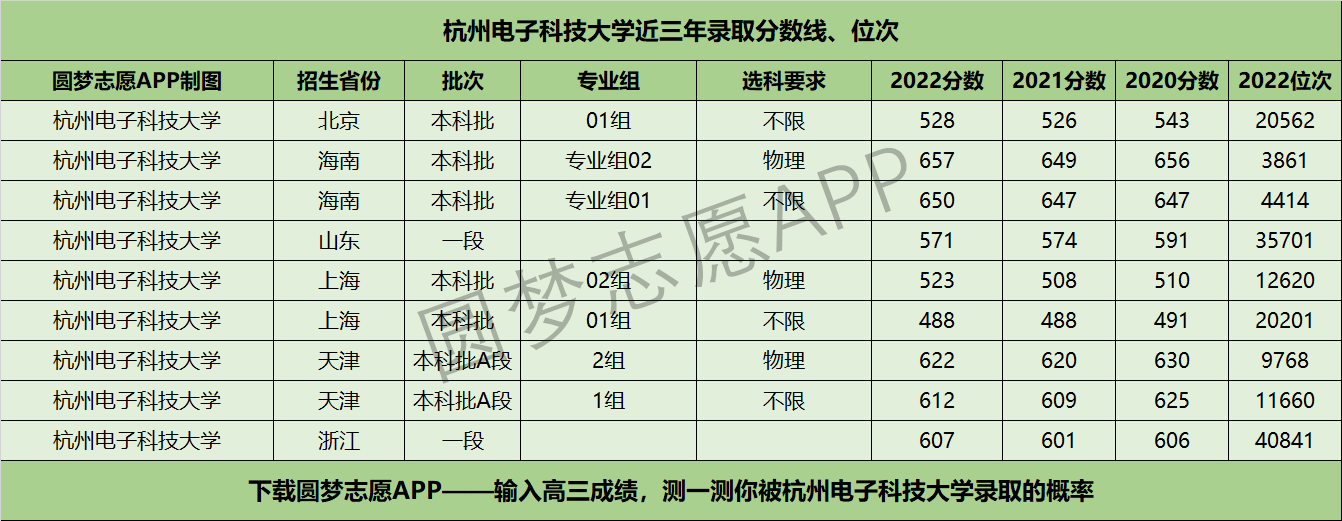 四、杭州电子科技大学近年录取分数线及位次【首选历史版】