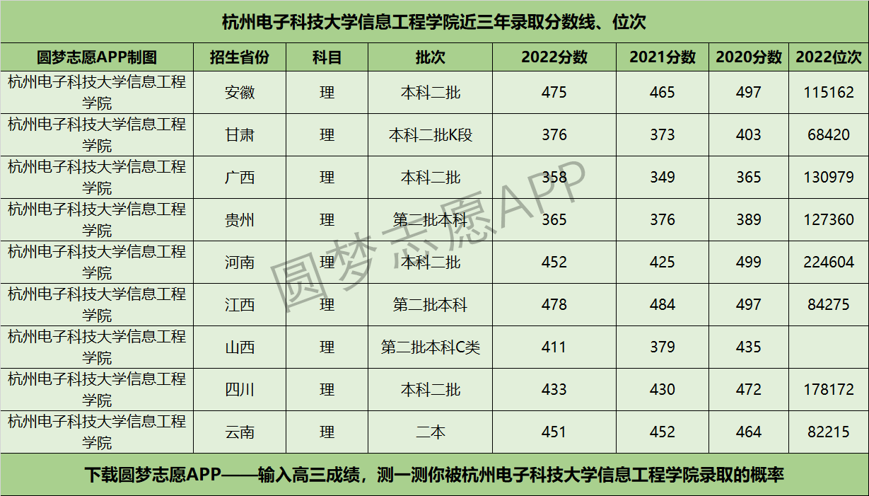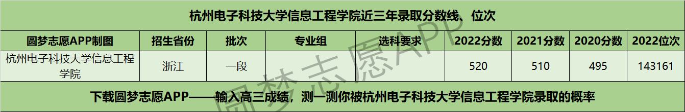 四、杭州电子科技大学信息工程学院近年录取分数线及位次【6选3省份】