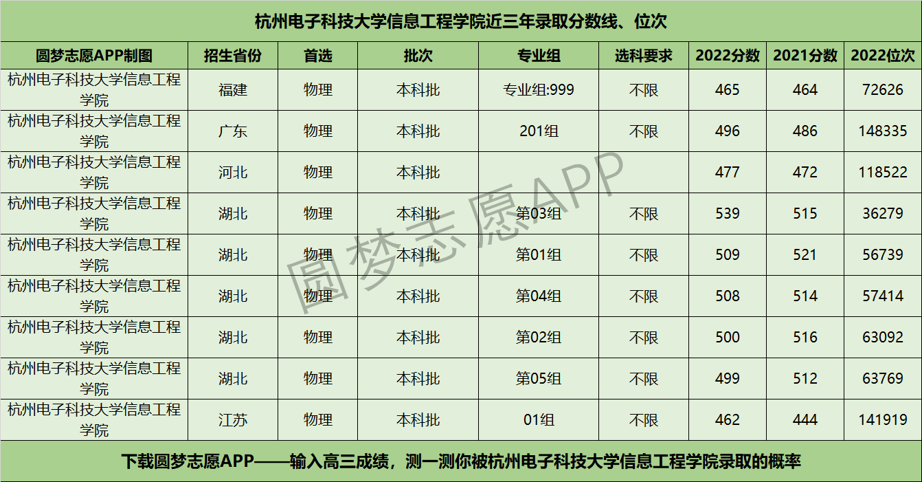 三、杭州电子科技大学信息工程学院近年录取分数线及位次【首选物理版】