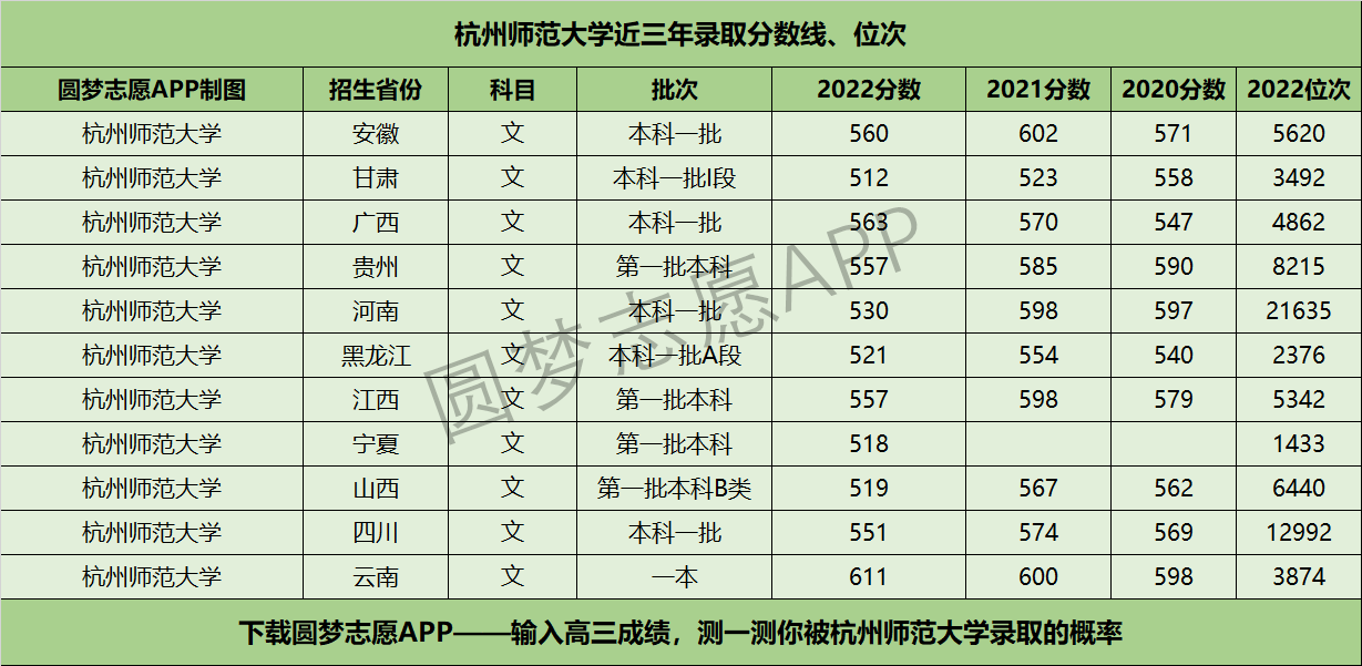 二、杭州师范大学近三年录取分数线及位次【文科版】