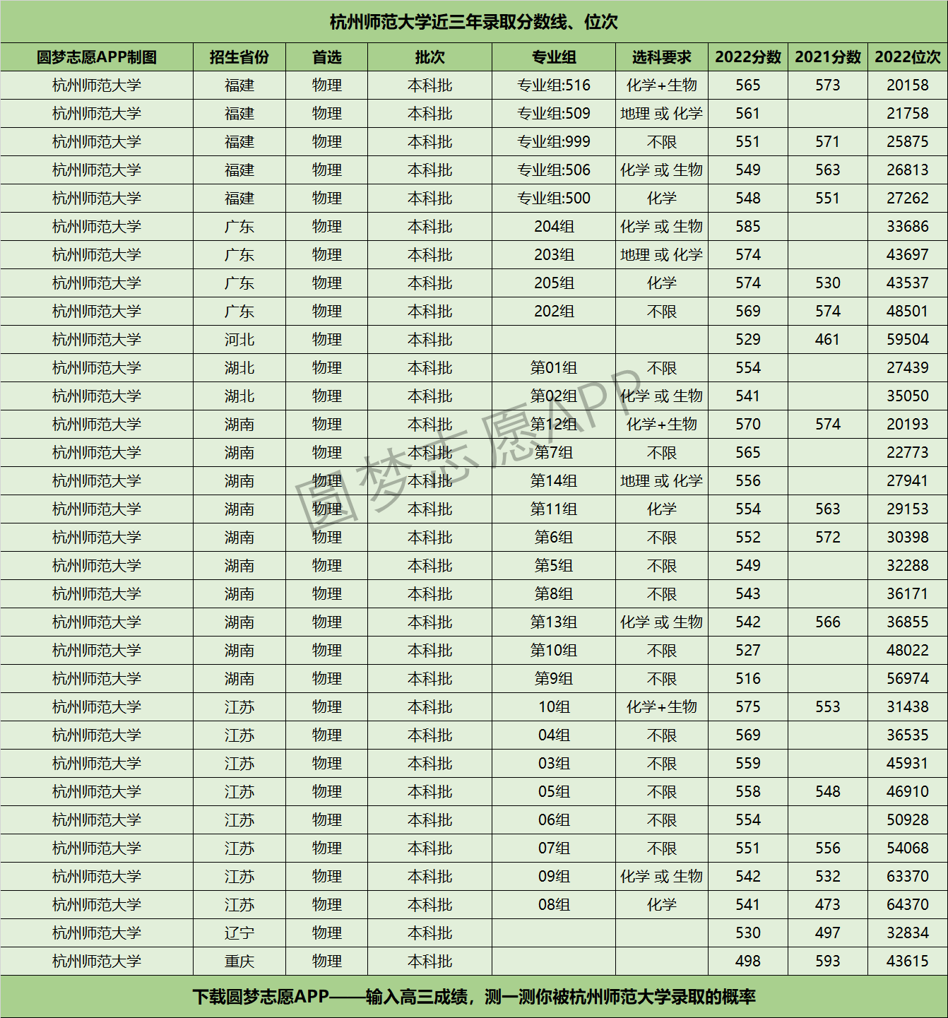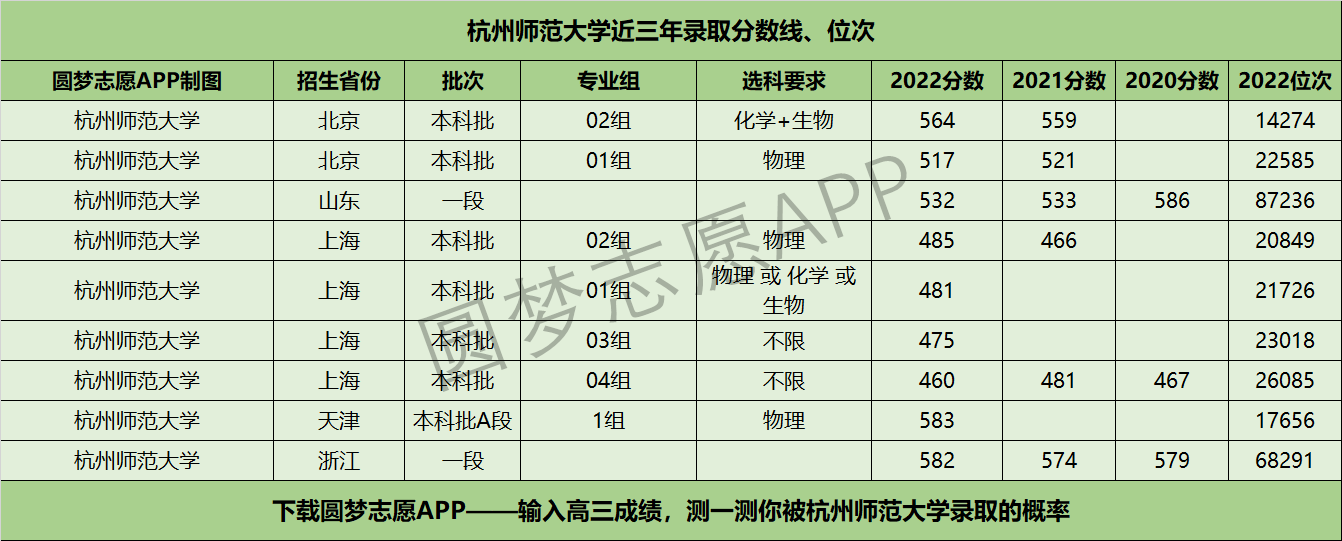 三、杭州师范大学近年录取分数线及位次【首选物理版】