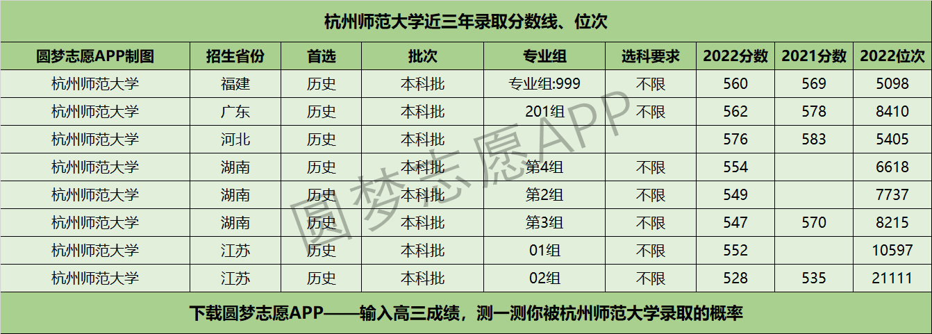 四、杭州师范大学近年录取分数线及位次【首选历史版】