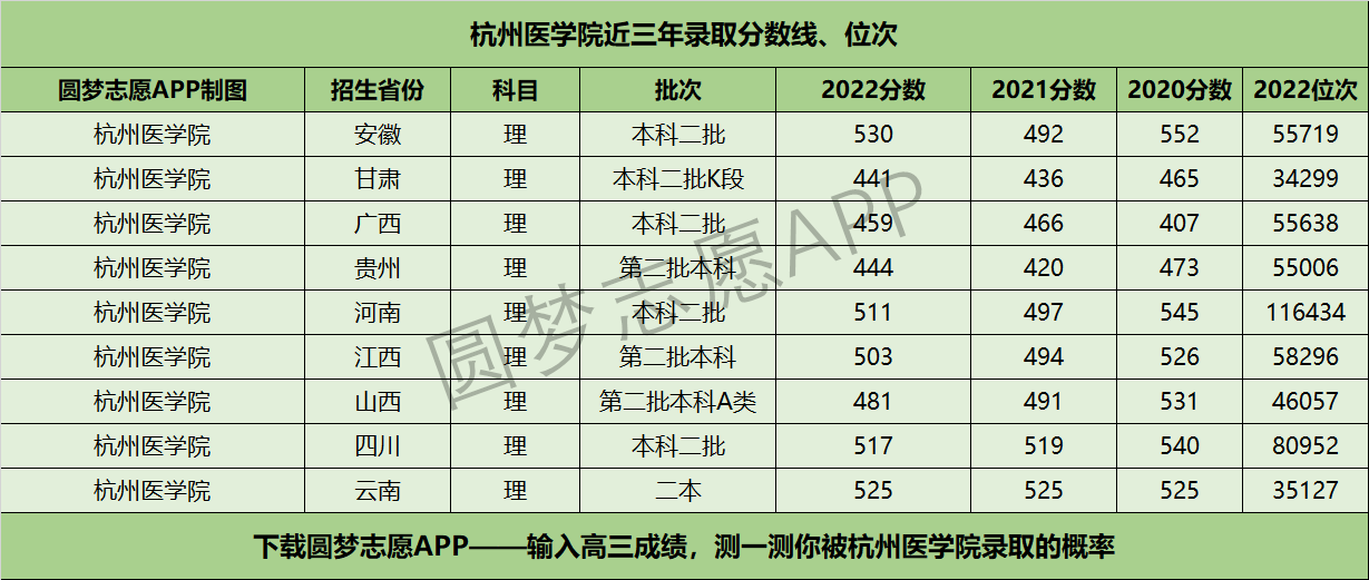 三、杭州医学院近年录取分数线及位次【首选历史版】