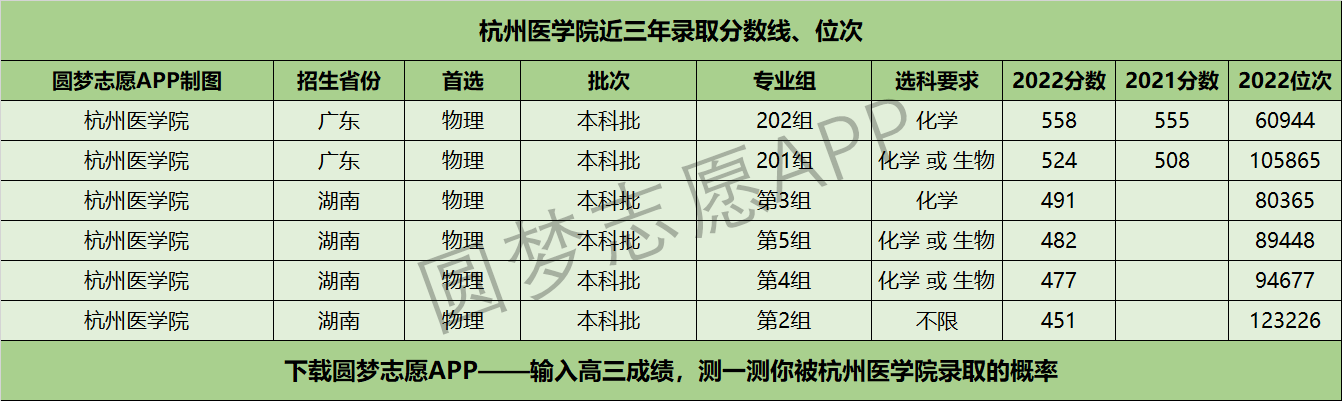 二、杭州医学院近年录取分数线及位次【首选物理版】