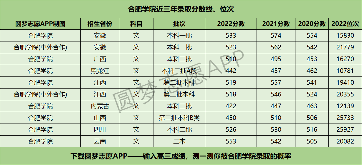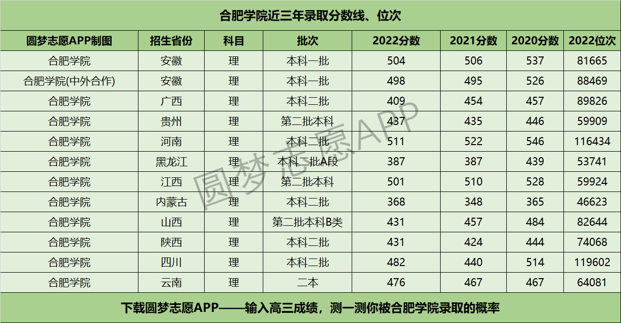 四、合肥学院近年录取分数线及位次【首选历史版】