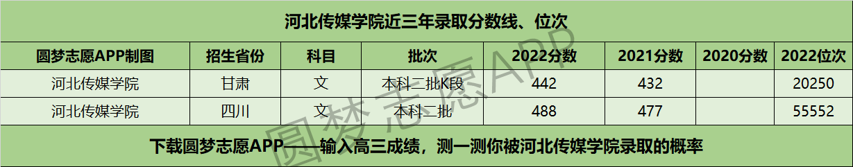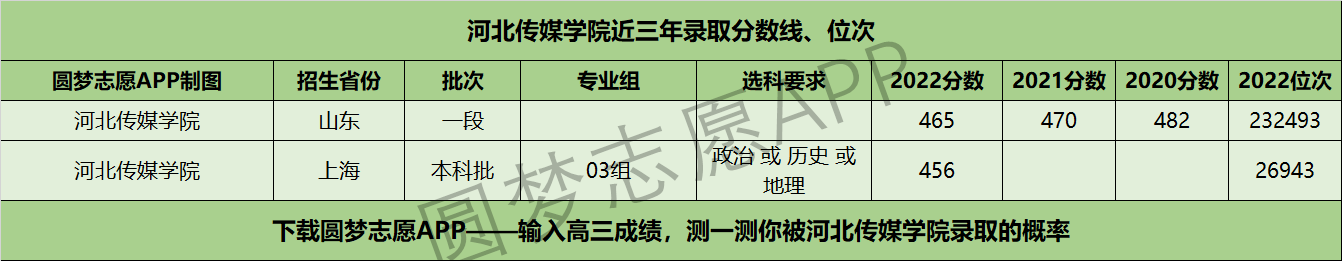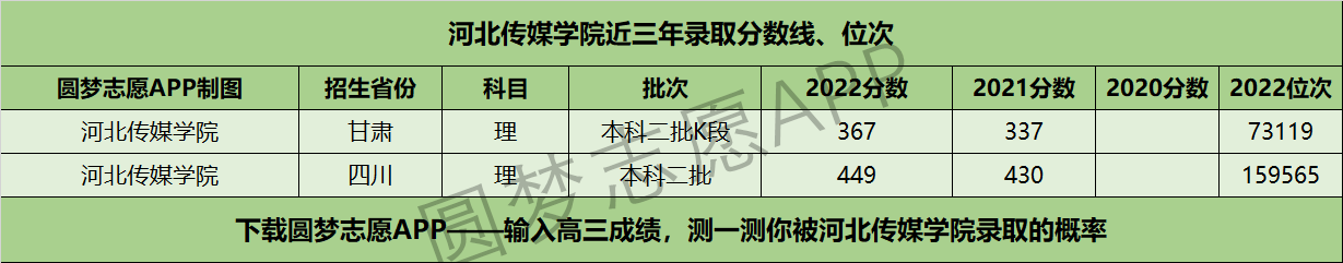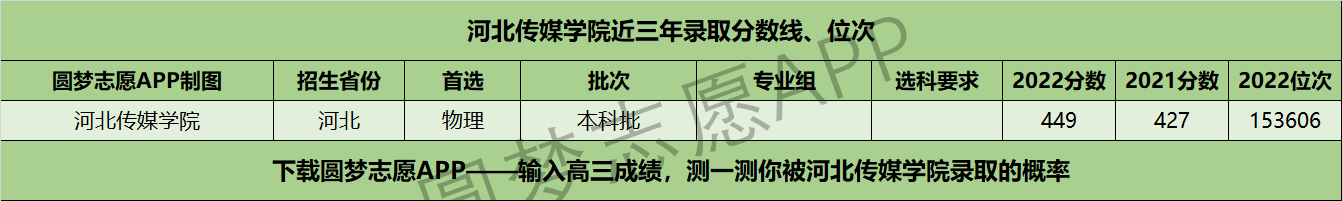 三、河北传媒学院近年录取分数线及位次【首选物理版】