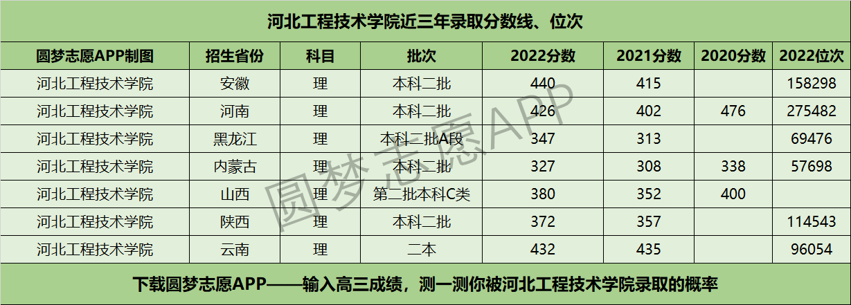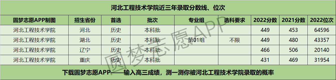四、河北工程技术学院近年录取分数线及位次【首选历史版】