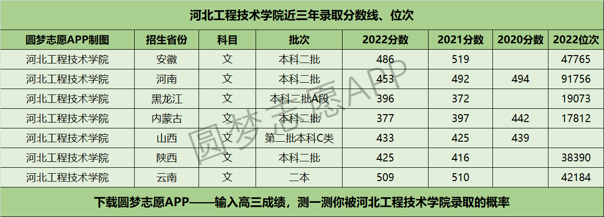 二、河北工程技术学院近三年录取分数线及位次【文科版】