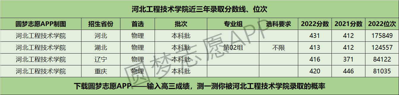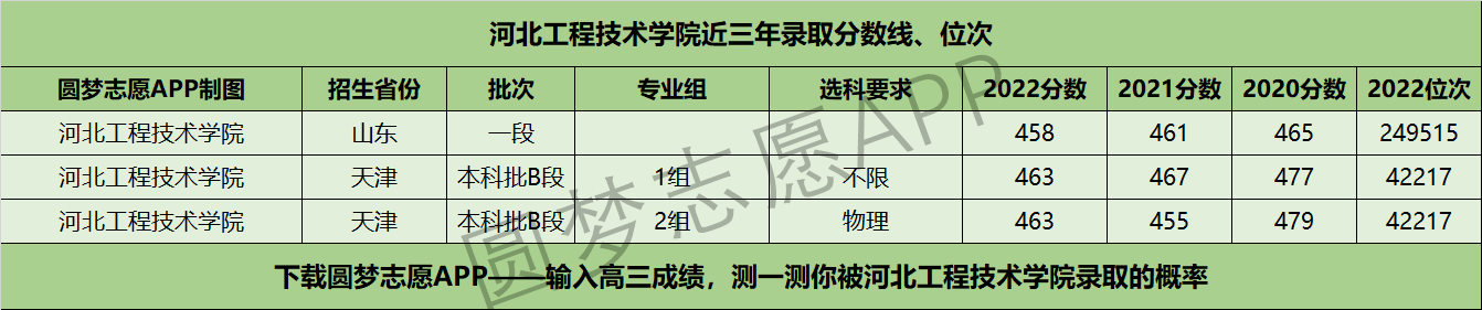 三、河北工程技术学院近年录取分数线及位次【首选物理版】