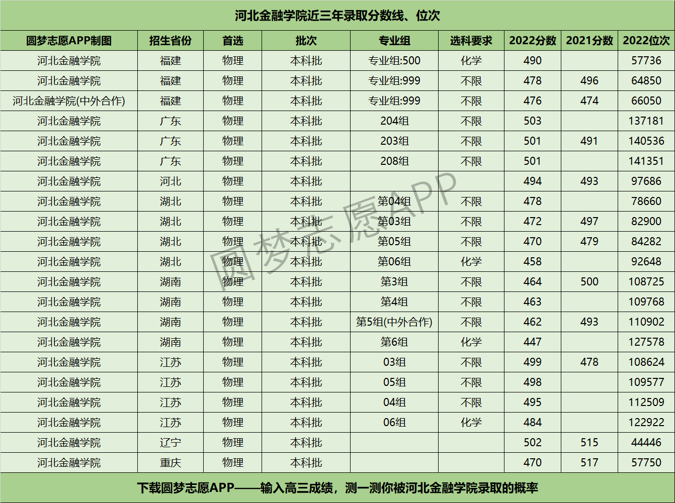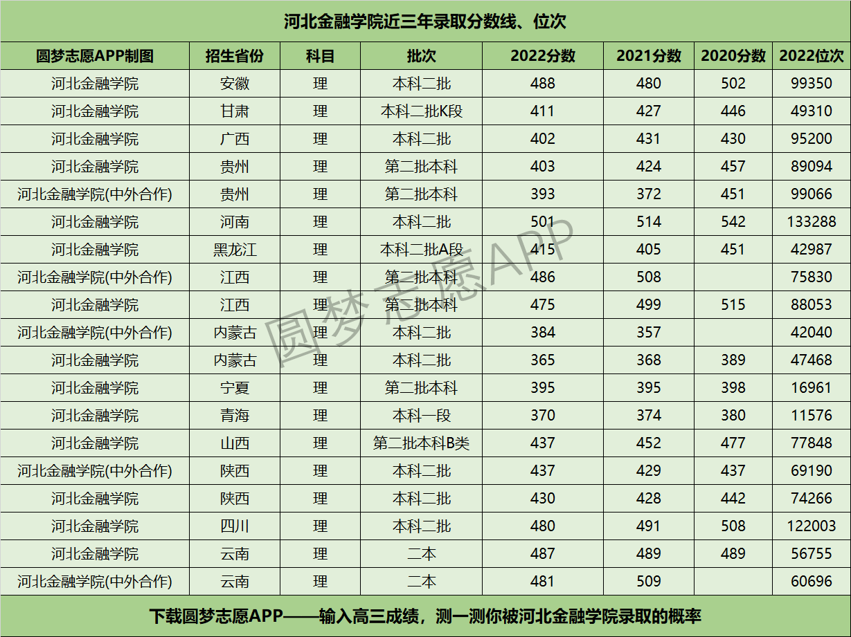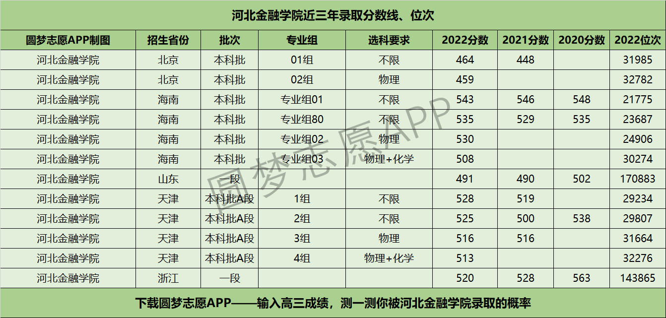 三、河北金融学院近年录取分数线及位次【首选物理版】