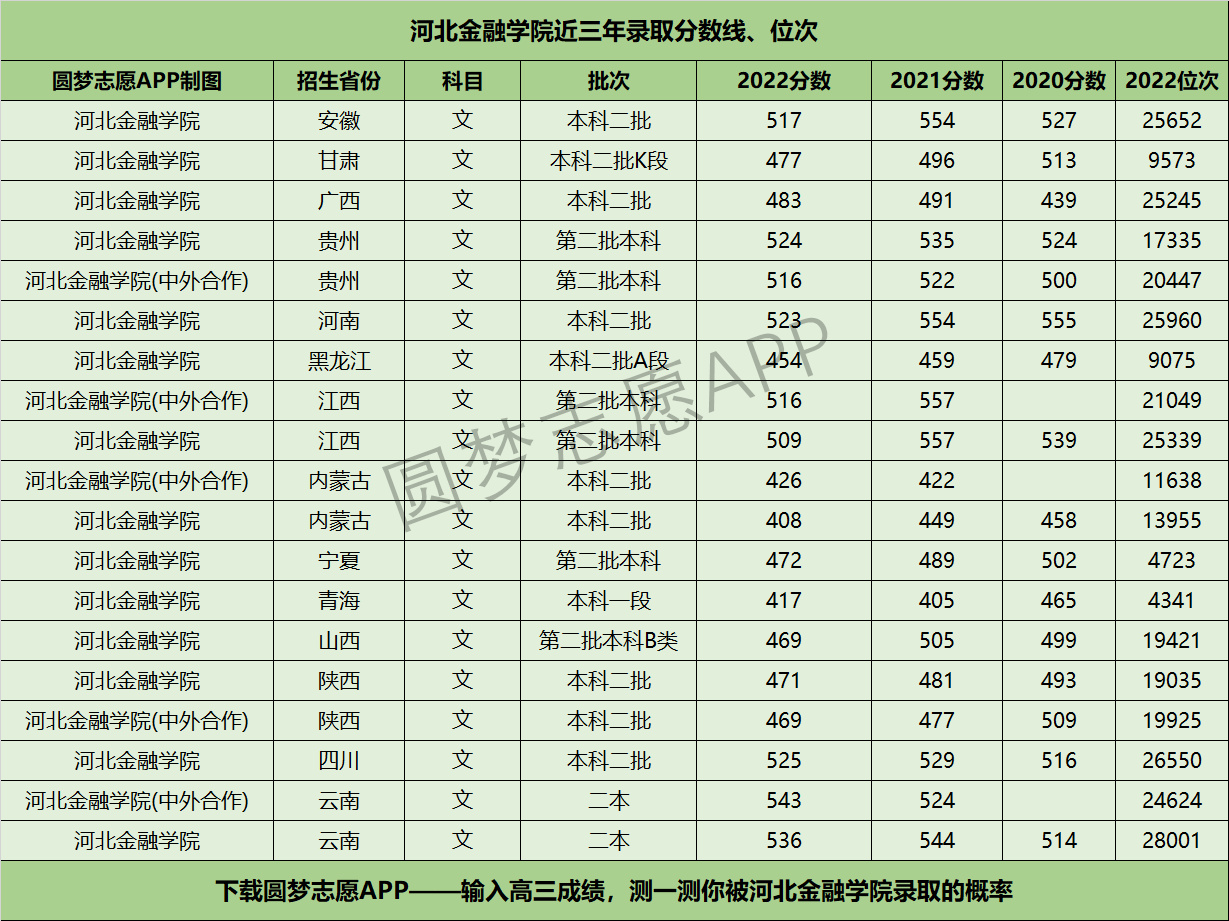 二、河北金融学院近三年录取分数线及位次【文科版】