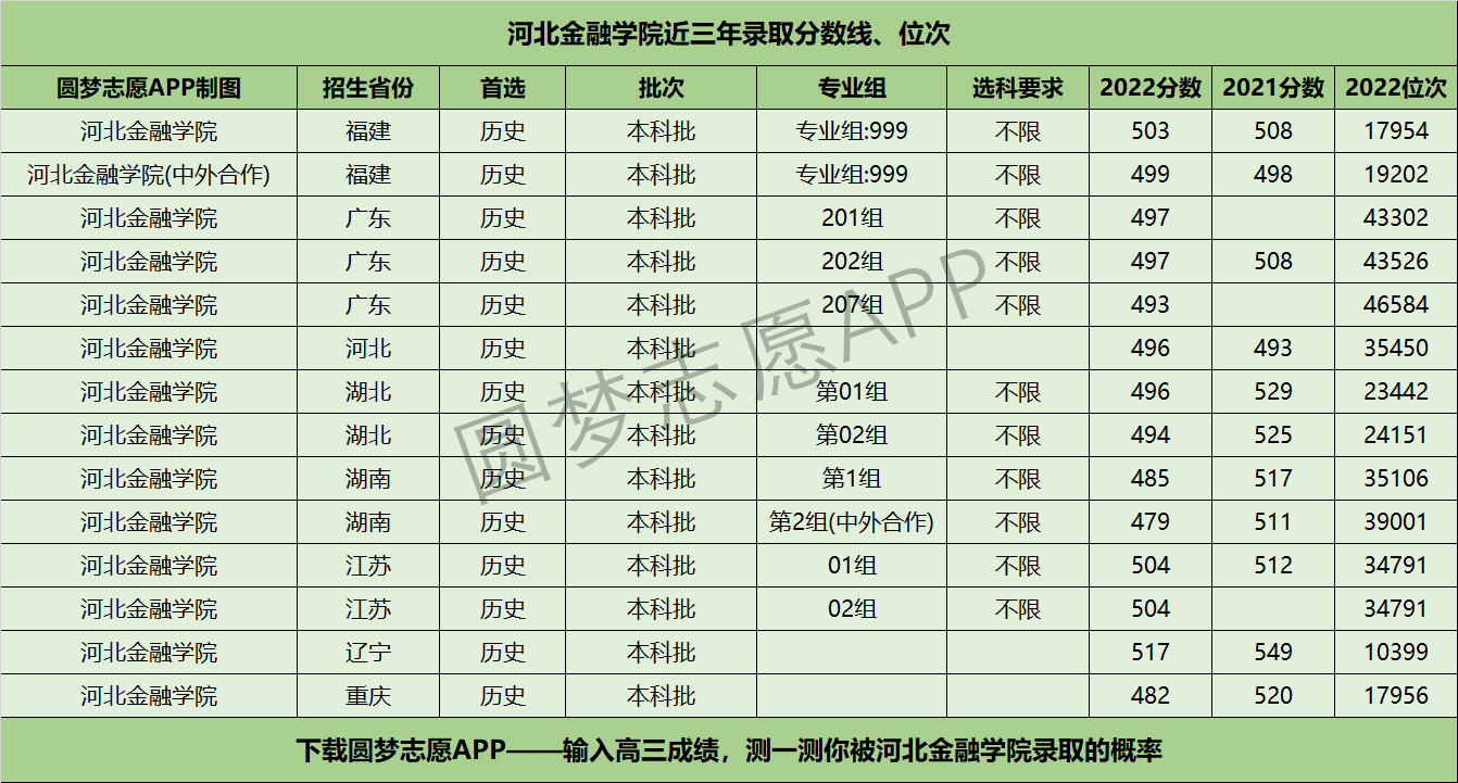 四、河北金融学院近年录取分数线及位次【首选历史版】