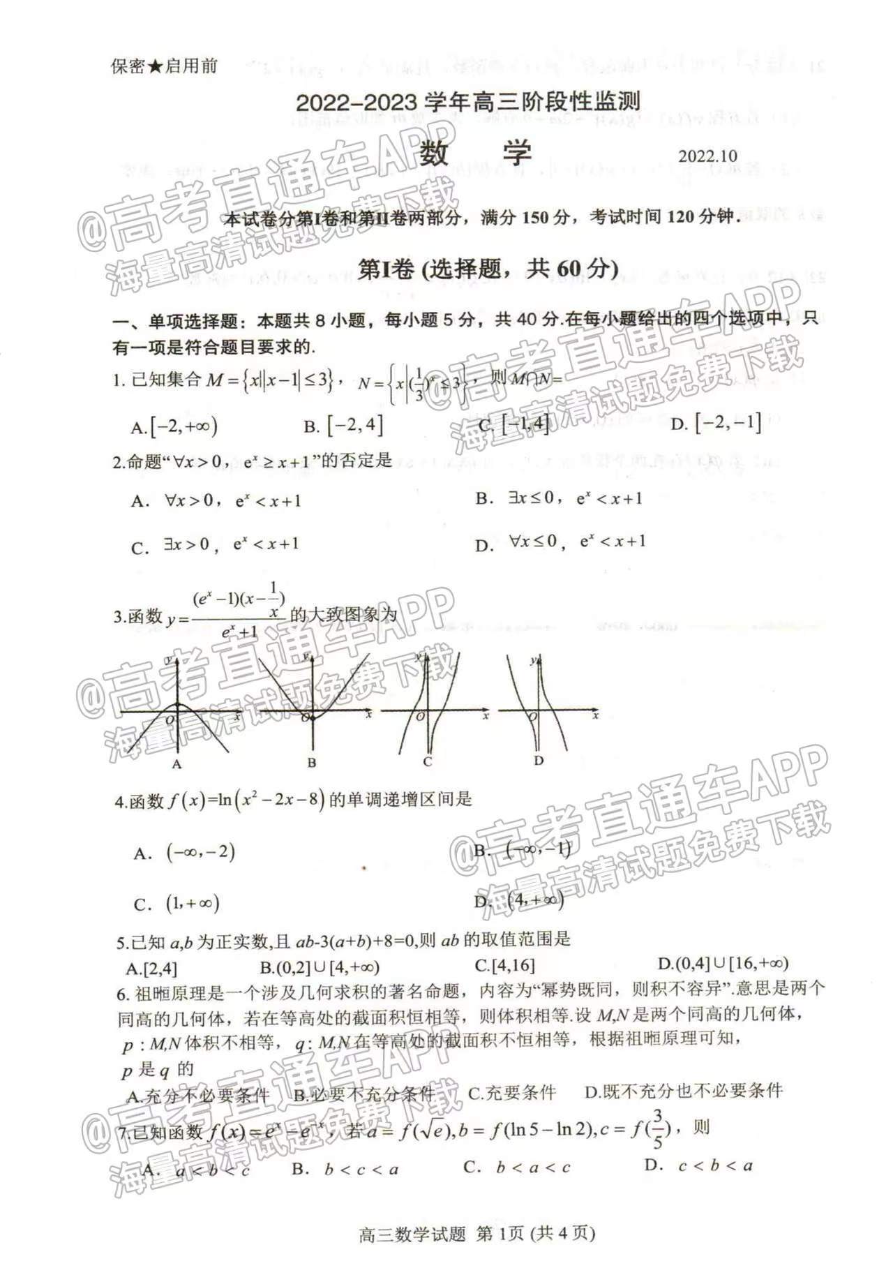 2023届潍坊高三上学期质量监测于2022年10月8日开考,所有科目参考答案正在更新中。本文将公布2023届潍坊高三上学期质量监测数学试题及参考答案,供考生查阅。