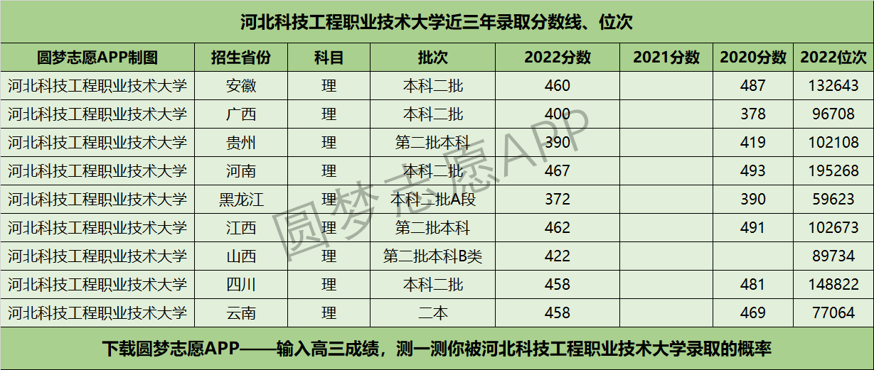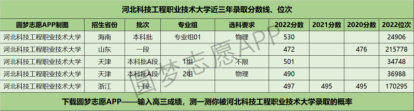 本文含河北科技工程职业技术大学近三年在【全国所有省市】的高考录取分数线、位次,篇幅较长,你可通过快速滑动找到你的高考省份。