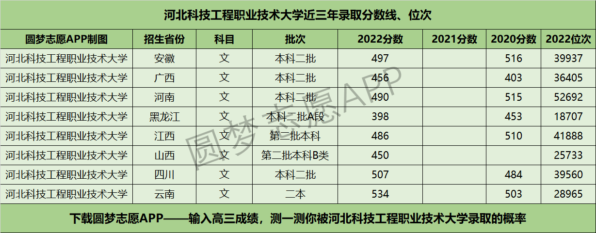 二、河北科技工程职业技术大学近三年录取分数线及位次【文科版】
