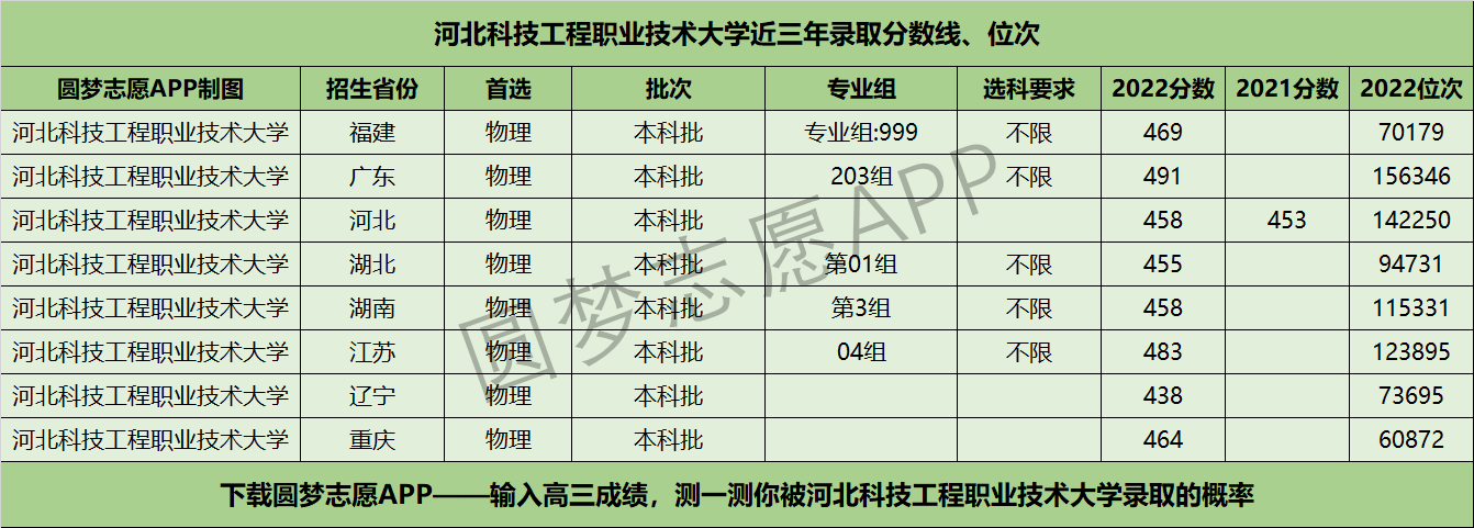 三、河北科技工程职业技术大学近年录取分数线及位次【首选物理版】