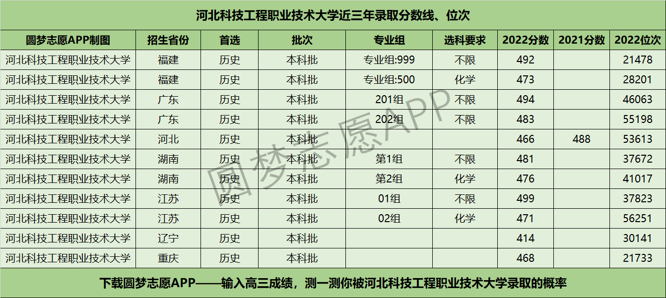 四、河北科技工程职业技术大学近年录取分数线及位次【首选历史版】