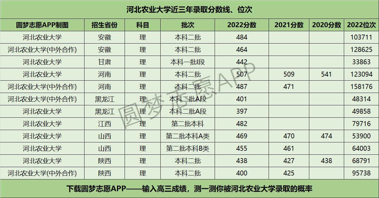 本文含河北农业大学近三年在【全国所有省市】的高考录取分数线、位次,篇幅较长,你可通过快速滑动找到你的高考省份。