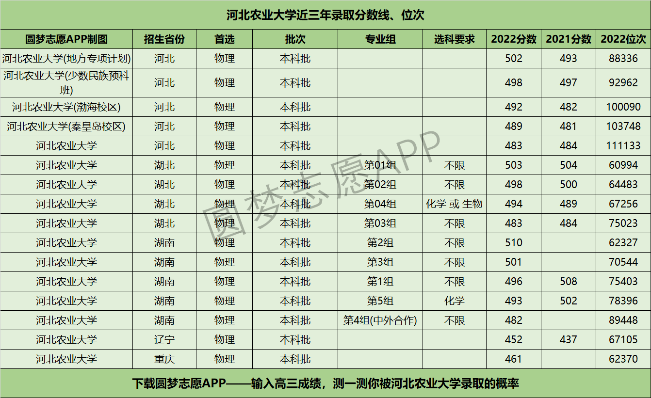 二、河北农业大学近年录取分数线及位次【首选物理版】