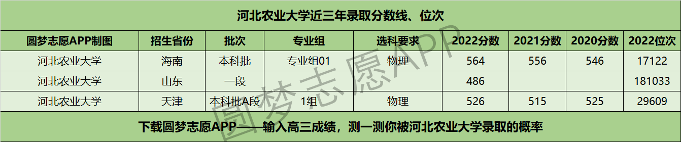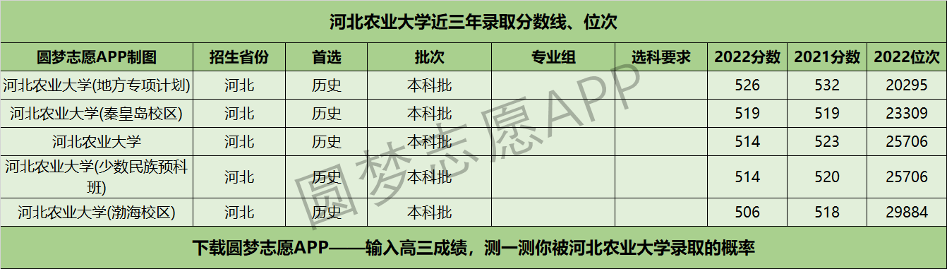 三、河北农业大学近年录取分数线及位次【首选历史版】