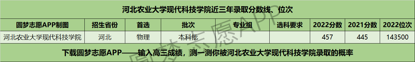 三、河北农业大学现代科技学院近年录取分数线及位次【首选物理版】