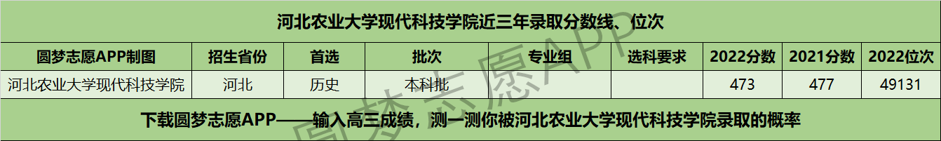 四、河北农业大学现代科技学院近年录取分数线及位次【首选历史版】