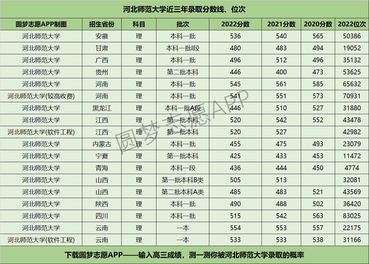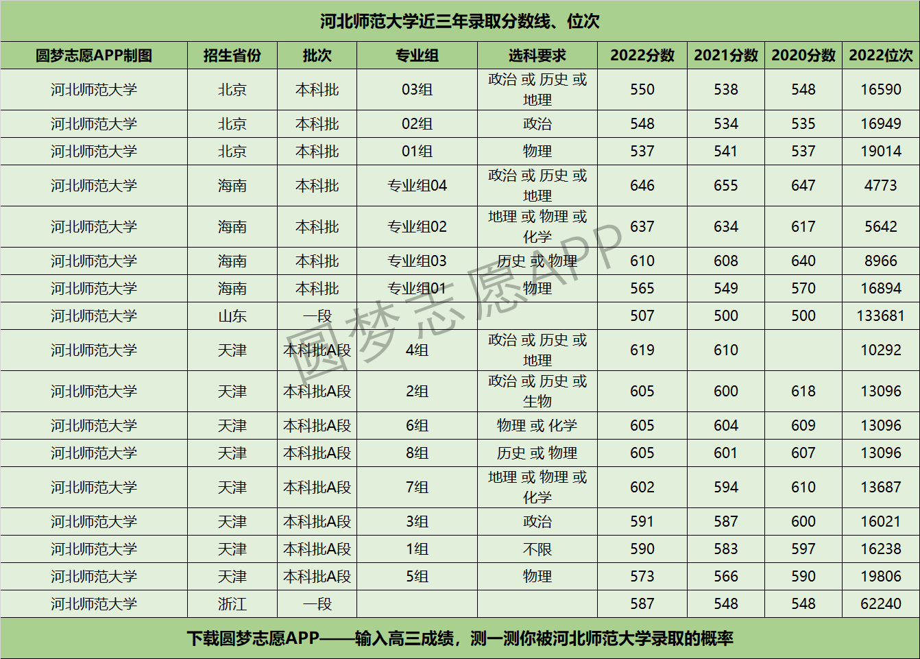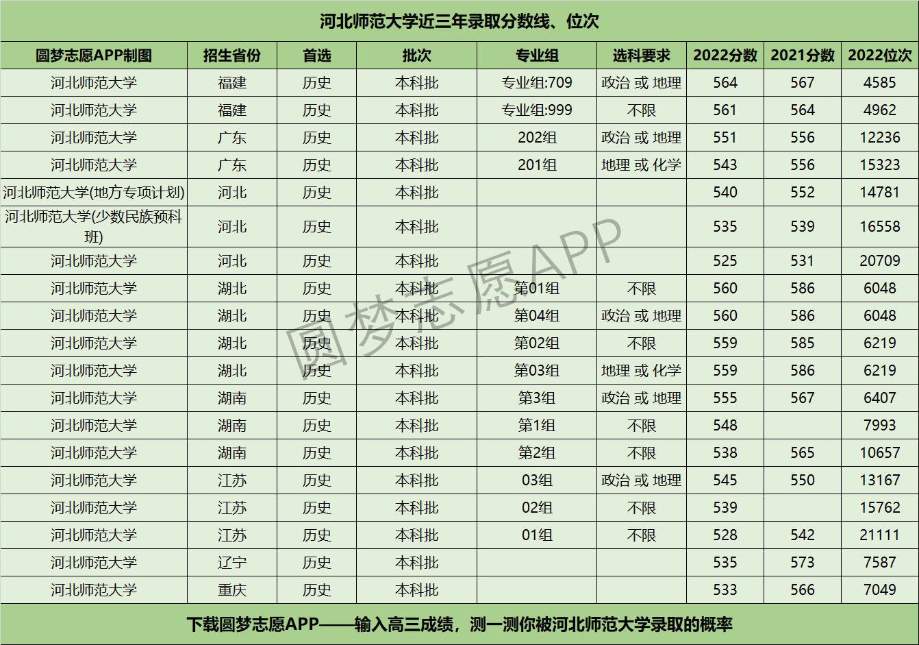 四、河北师范大学近年录取分数线及位次【首选历史版】