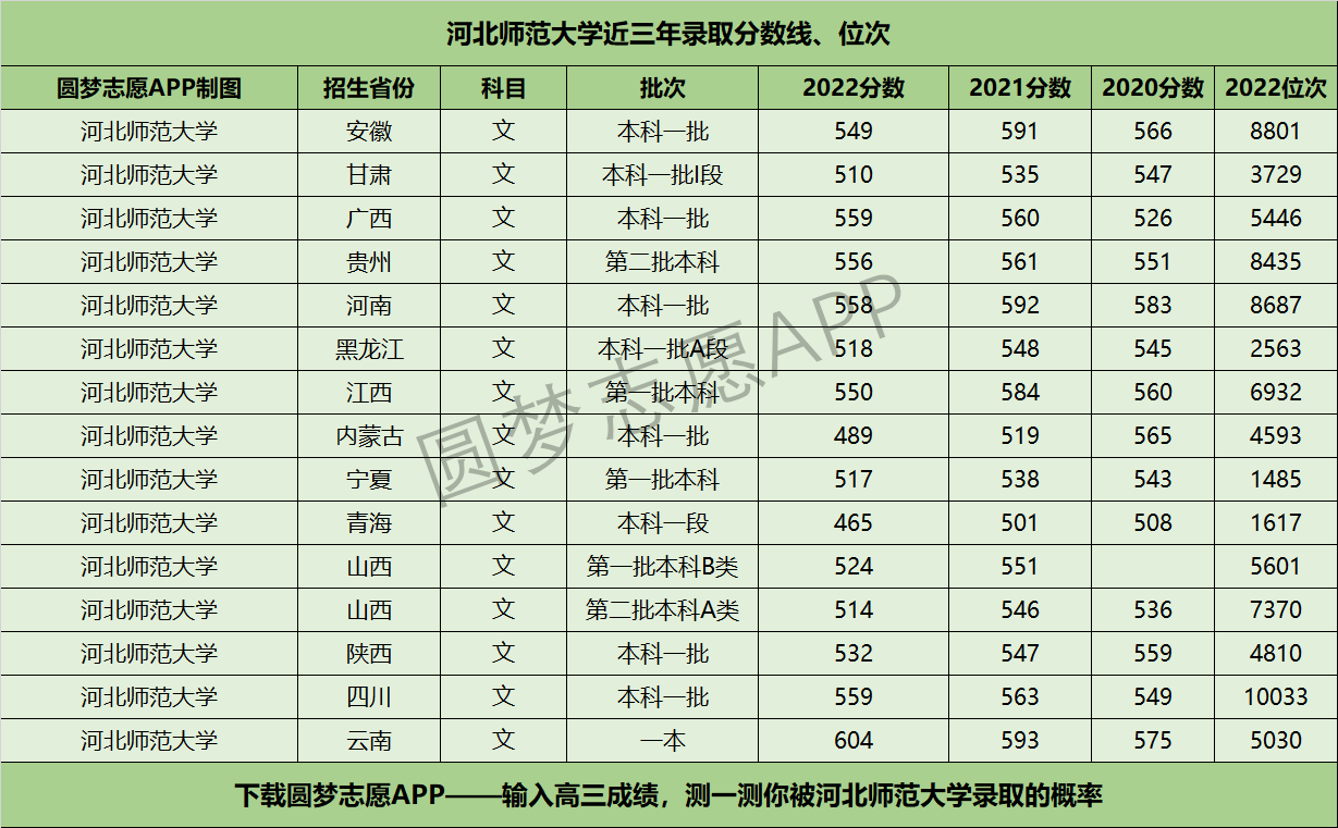 二、河北师范大学近三年录取分数线及位次【文科版】