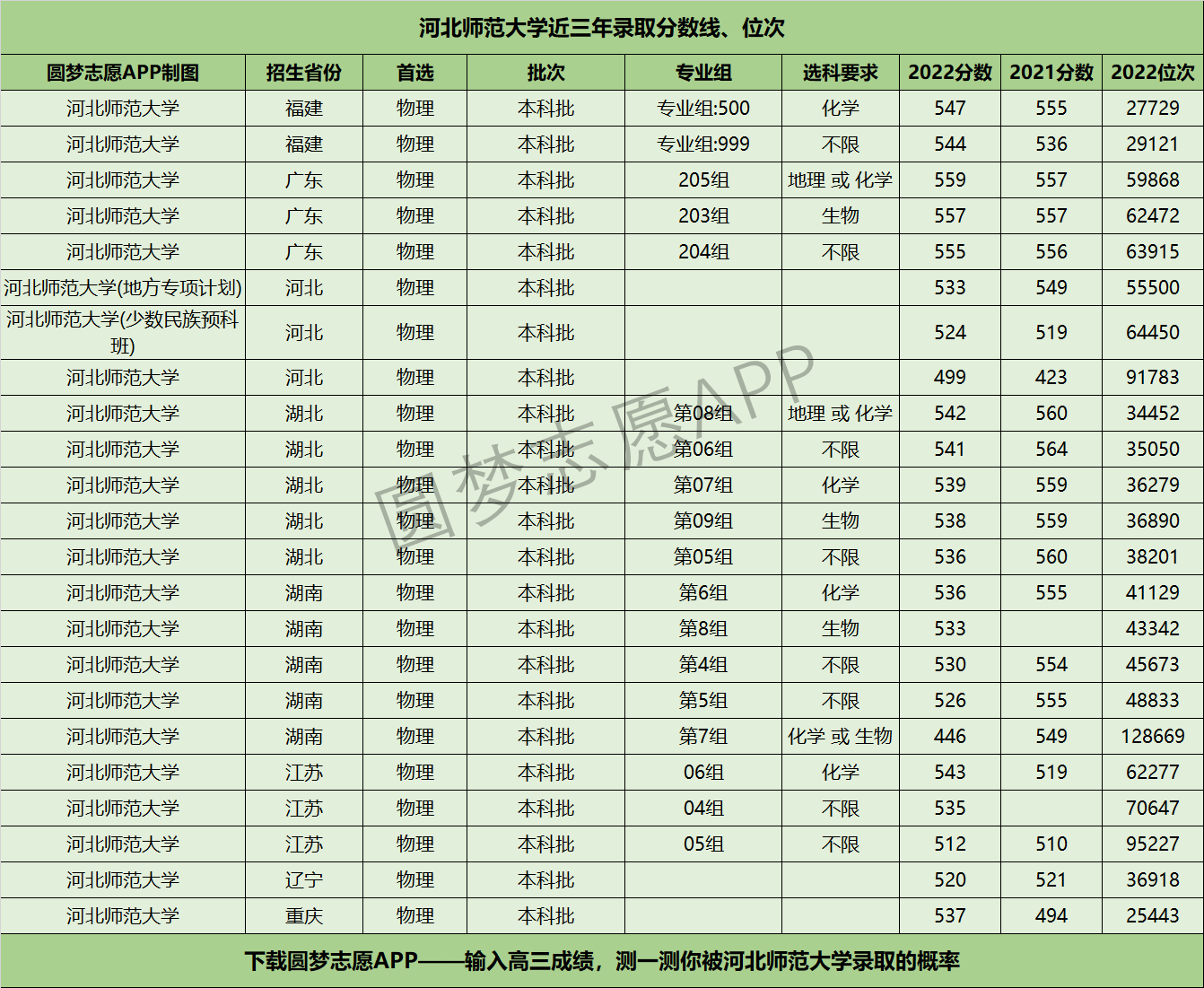 三、河北师范大学近年录取分数线及位次【首选物理版】