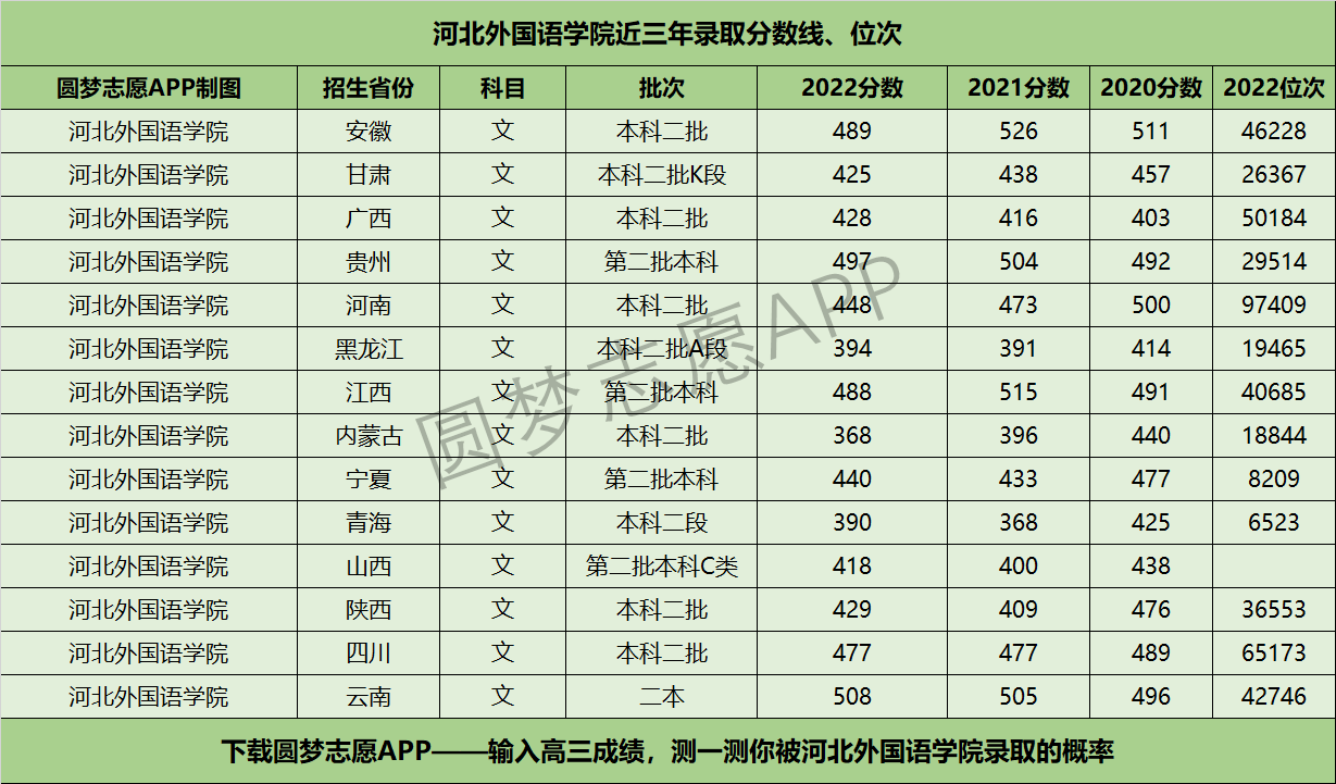 二、河北外国语学院近三年录取分数线及位次【文科版】
