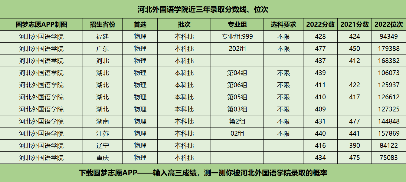 三、河北外国语学院近年录取分数线及位次【首选物理版】