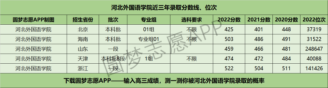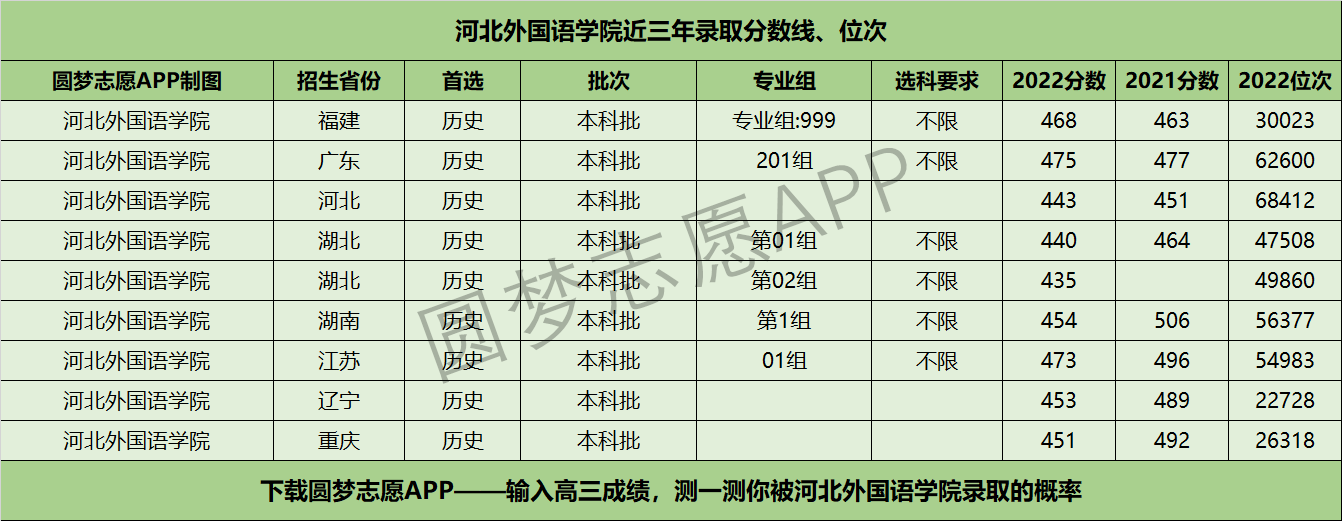 四、河北外国语学院近年录取分数线及位次【首选历史版】