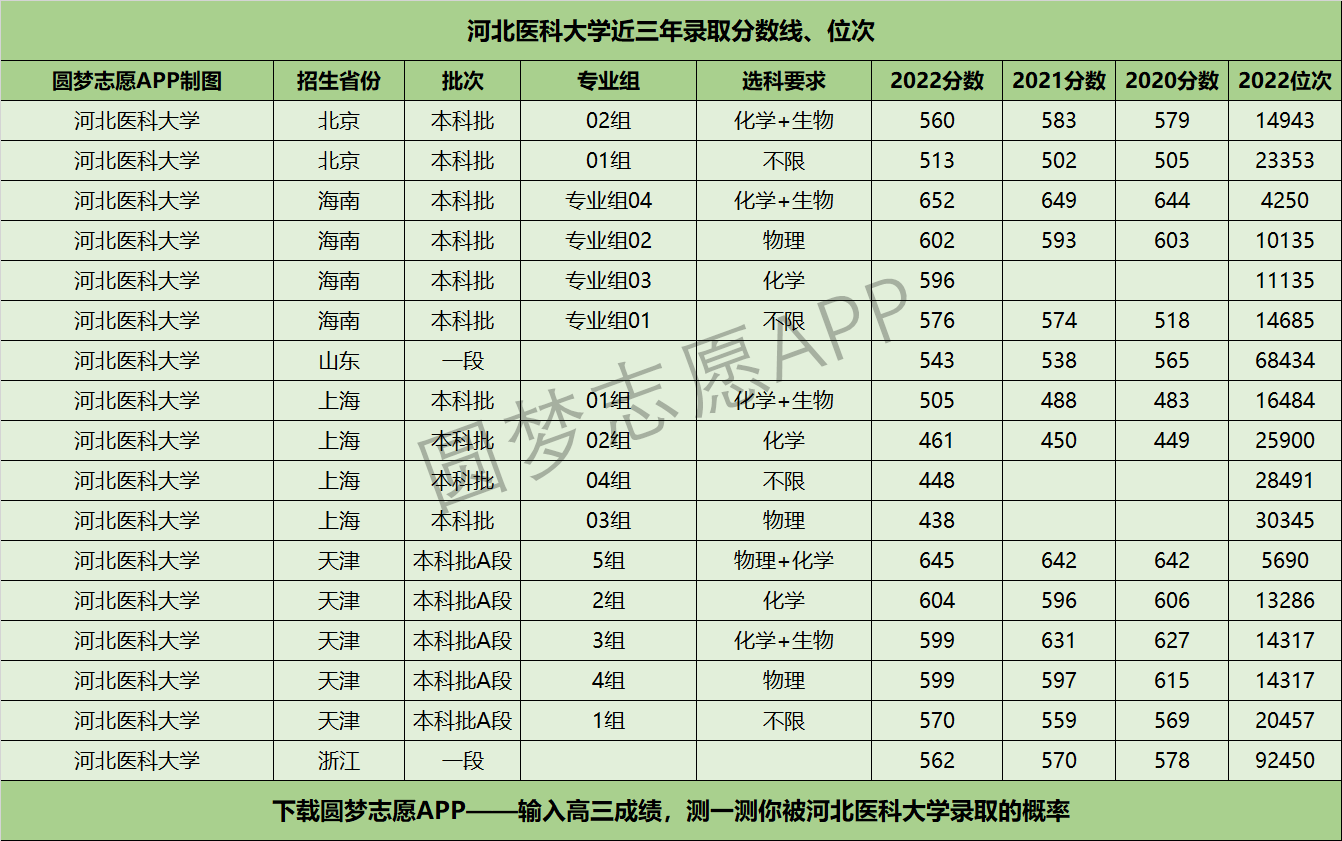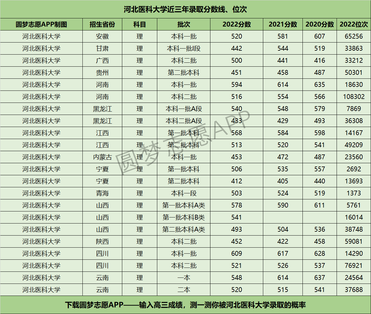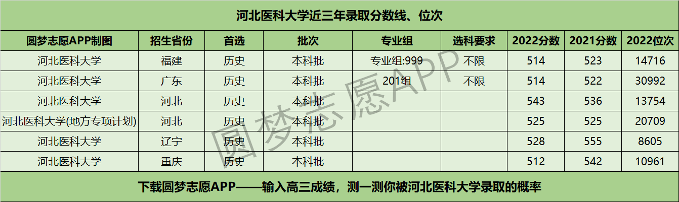 四、河北医科大学近年录取分数线及位次【首选历史版】