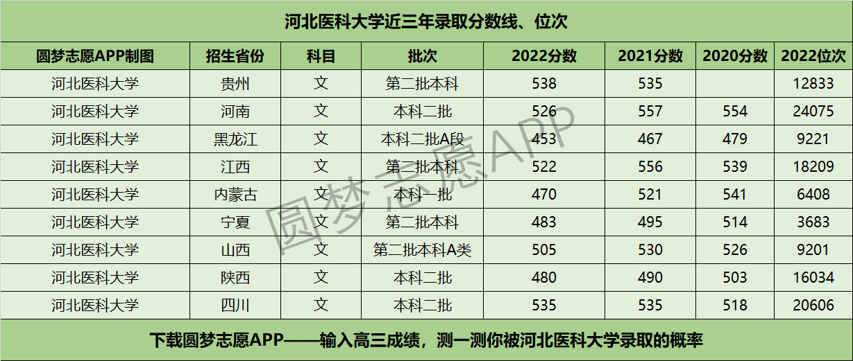 二、河北医科大学近三年录取分数线及位次【文科版】