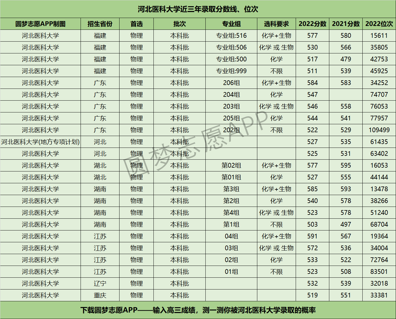 三、河北医科大学近年录取分数线及位次【首选物理版】