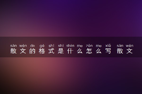散文格式大体有纪实性(直抒式)、想象式、哲理式和象征式四大类。散文的精髓是“形散神不散”。所以散文不需要特定的写作格式。
