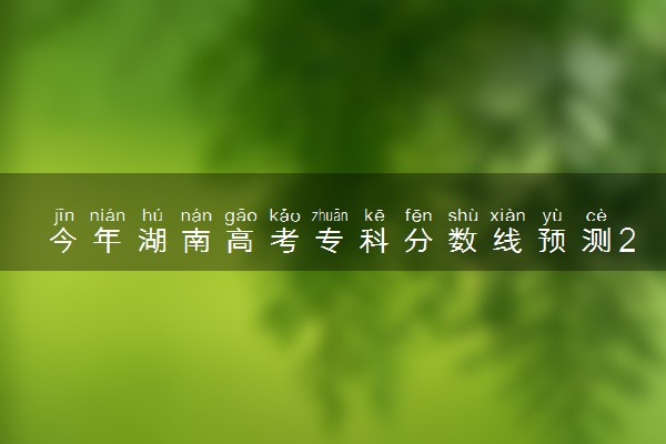 预测2023年湖南专科批分数线为200分左右。根据湖南历年高考专科分数线来看,每年文物理类分数线变化都不是很大,所以预测湖南2023年的高考专科分数线和2022年的差不多,预计200分以上就可以上专科。