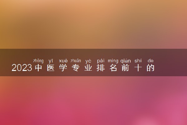 2023中医学专业排名前十的大学是北京中医药大学、广州中医药大学、南京中医药大学、浙江中医药大学、山东中医药大学、天津中医药大学、上海中医药大学、黑龙江中医药大学、辽宁中医药大学、成都中医药大学等。