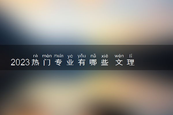 2023文科热门专业包括工商管理专业、汉语言文学专业、新闻学专业、法学专业、管理学专业等,理科热门专业有通信工程专业、网络工程专业、软件工程专业、计算机科学与技术专业、信息安全专业等。