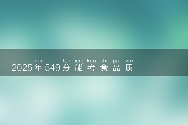 根据往年各大学食品质量与安全专业的录取分数线来看,549分可以考上食品质量与安全专业。但考生需要注意,具体录取分数会受到多种因素的影响,包括考生的省份、科目类别等,具体以各省当年的实际情况为准。